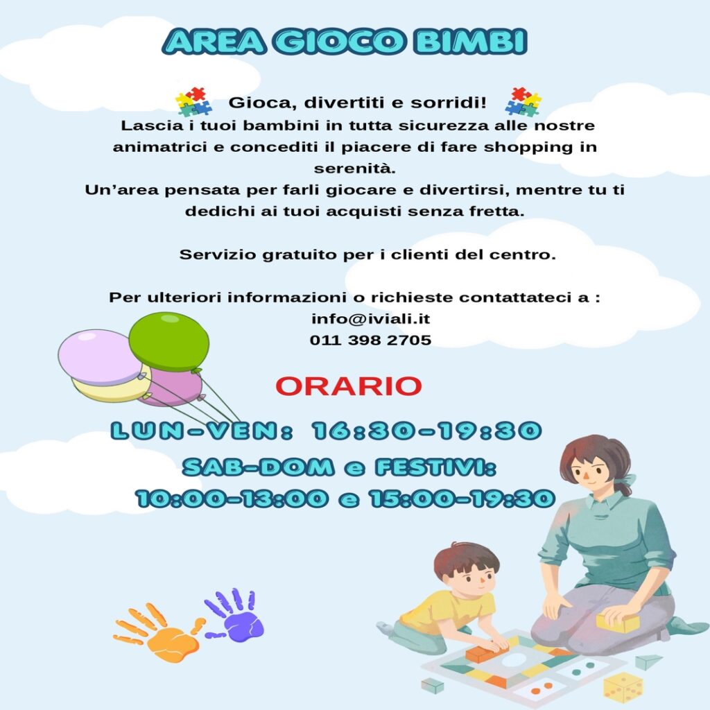 🎈 Cerchi un momento di relax mentre i tuoi bimbi si divertono? Da I Viali Shopping Park c’è l’Area Gioco Bimbi pronta ad accoglierli in tutta sicurezza! 🧩